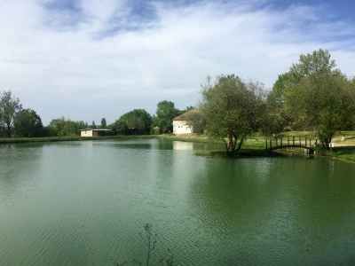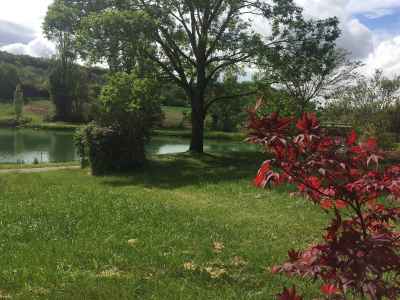 Le domaine est entouré de 18 hectares de collines boisées, de nombreux animaux et d'un grand lac de pêche.